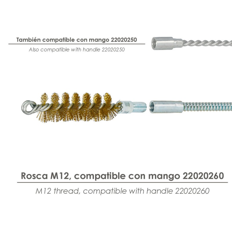 - Equipado con rosca M12, este cepillo es totalmente compatible con varillas y extensiones que presenten esa medida estándar.