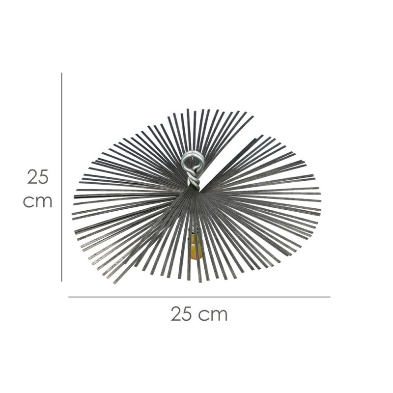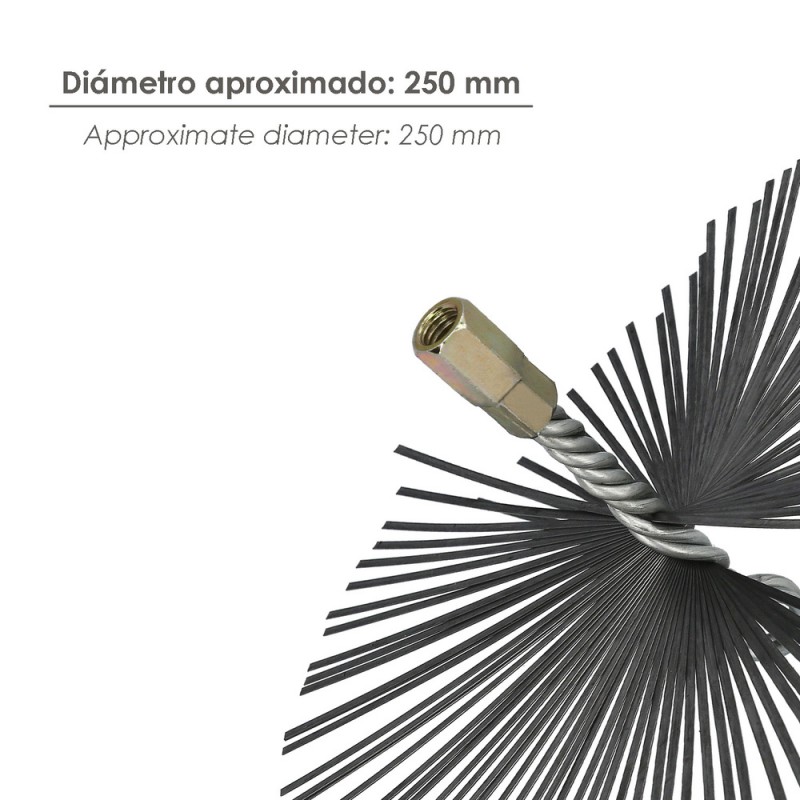 - Con un diámetro aproximado de 250 mm, este cepillo deshollinador es compatible con una variedad de kits para estufas y chimeneas, lo que lo hace versátil y práctico.