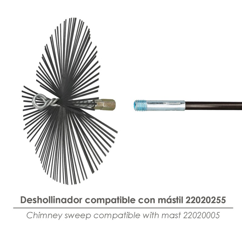 - Su uso es válido para diferentes referencias como el Kit cepillo deshollinador tubo estufa (22020655), el Cepillo limpiador chimenea (22020650) y el Mastil deshollinador de 5 tramos de 140 cm (22020635), lo que lo convierte en un complemento ideal para tu kit de mantenimiento.