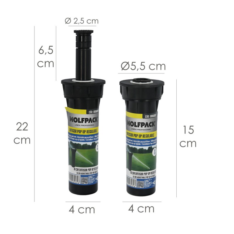 - Tambien conocido como: Aspersor emergente 5 cm, difusor emergente de riego, aspersor pop-up regulable, difusor retráctil para césped, aspersor de riego 1/2" regulable, cabezal de riego emergente, difusor de riego para jardín, aspersor enterrado de 10 cm, cuerpo difusor pop-up, emisor de riego emergente regulable