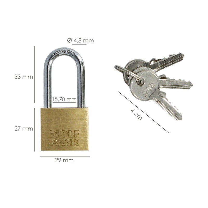Candado Laton Arco Largo Llaves Iguales 30 mm. Nº2