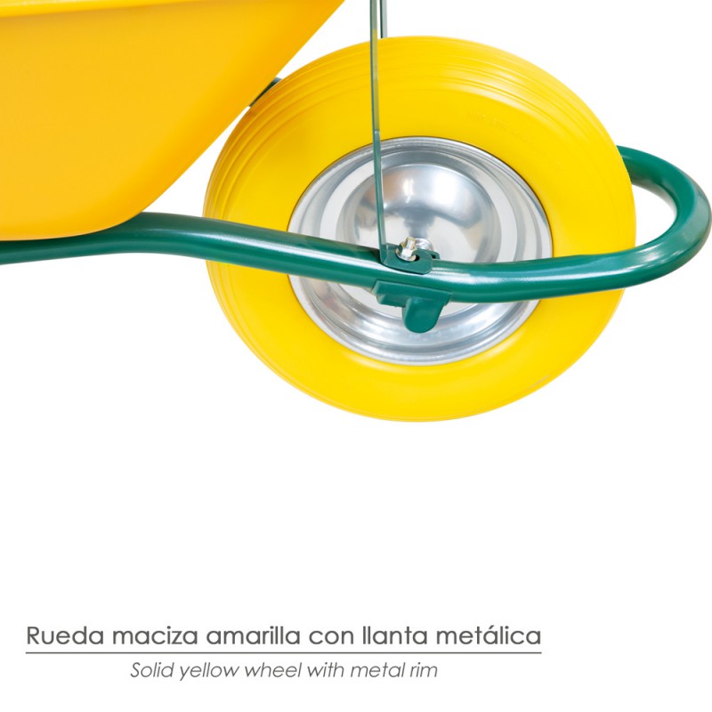 - Rueda maciza amarilla con llanta metálica