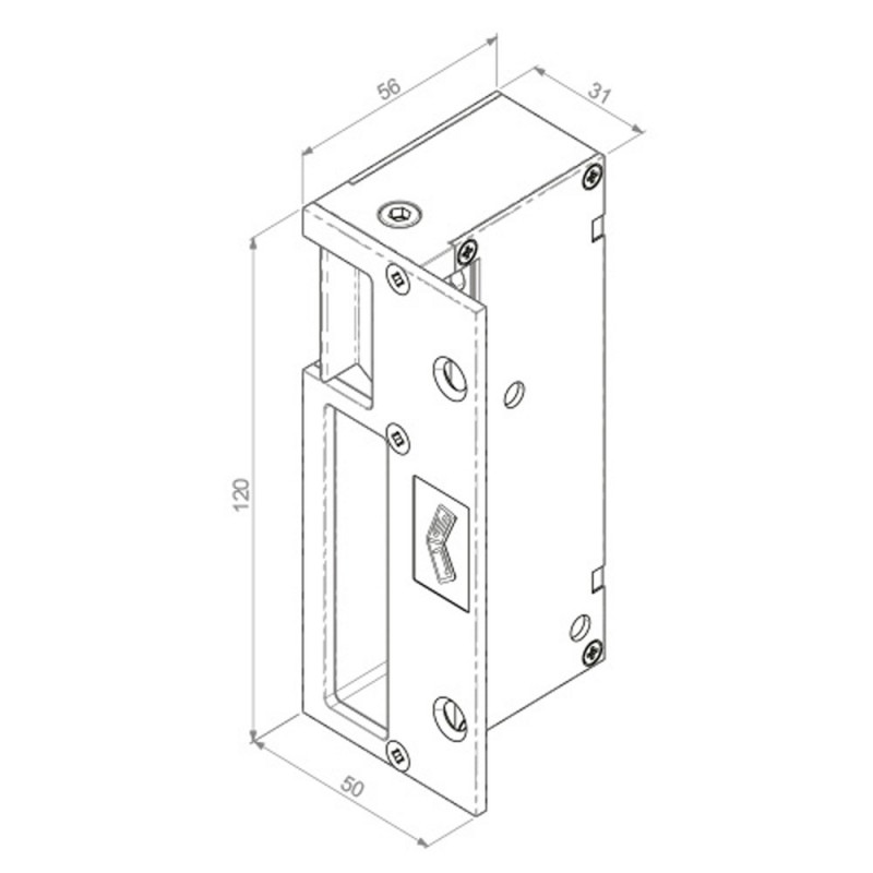 - Cierre eléctrico o abrepuertas modelo 1123 reversible de JIS para cerraduras de tipo vertical, con resbalón arriba y recepción de palanca de cierre abajo.