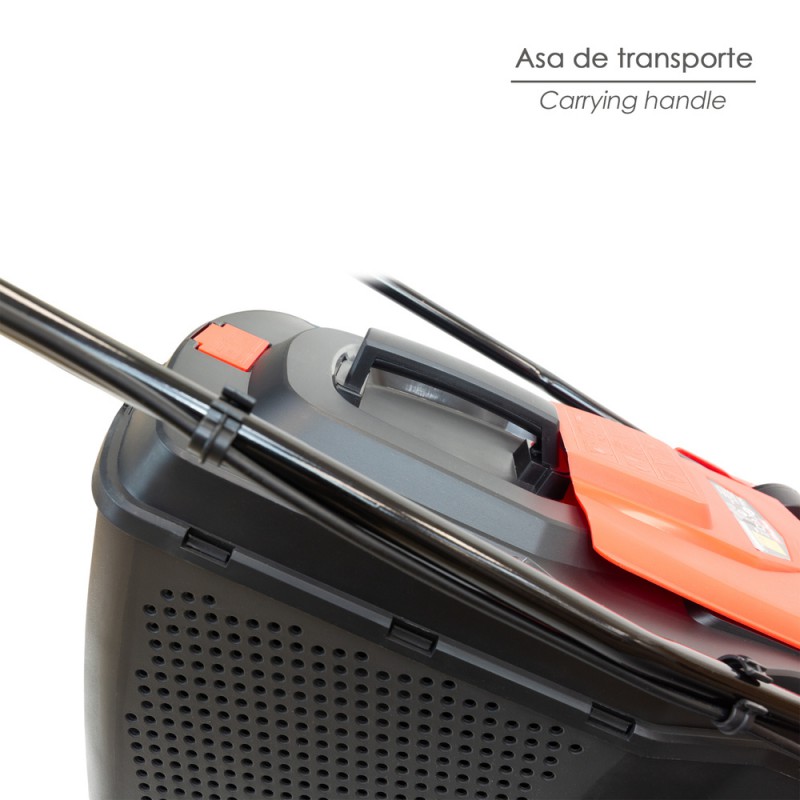 - Con un peso de 11 kg, este cortacésped eléctrico es fácil de transportar y almacenar.