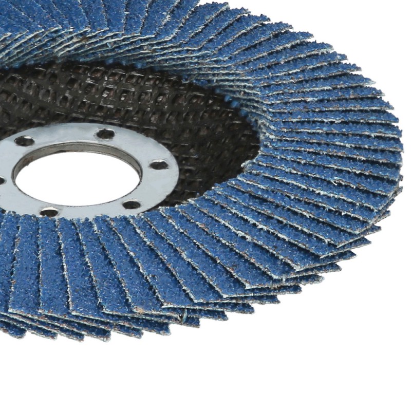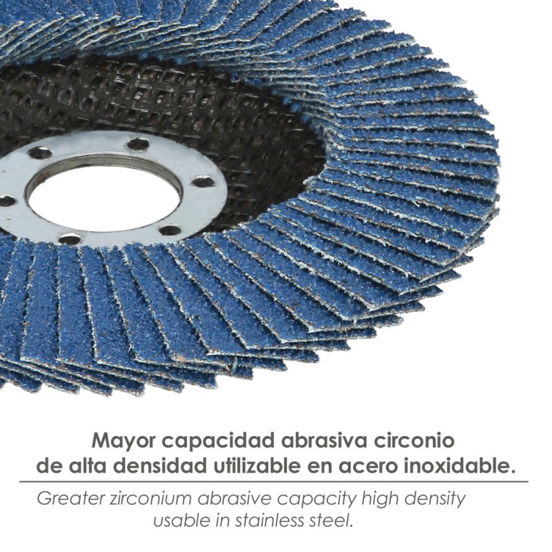 - Aletas del disco con circonio y un angulo de 10º. El circonio le aporta una duración mayor. Disco de lija para amoladora de 115 mm.
