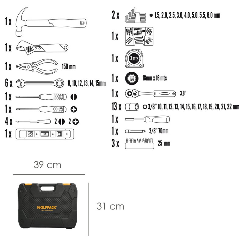 - El juego incluye maletín en el que puede ordenar las puntas, las llaves, los vasos y las herramientas segun el tamaño.
