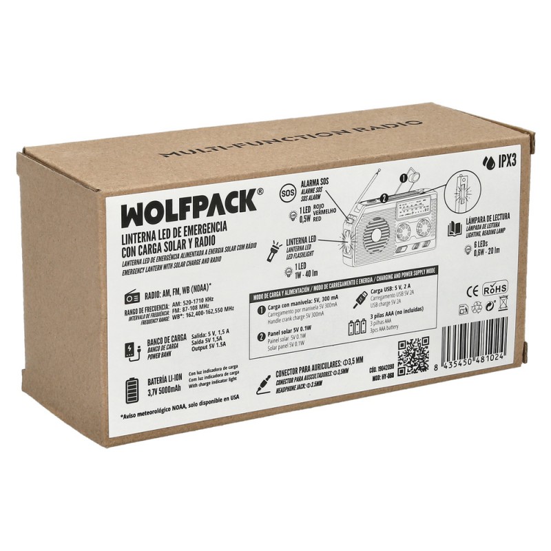 Linterna Led De Emergencia Solar Con Radio, Con Bateria, Carga Manual Dinamo