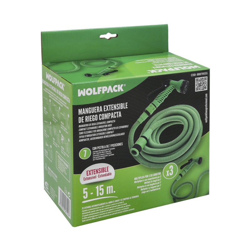 Manguera Extensible Riego Compacto 5 A 15 Metros Con Pistola 7 Posiciones